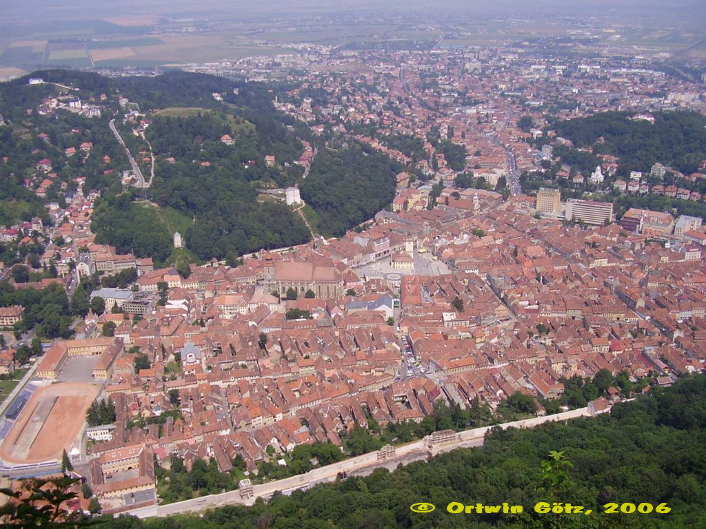 Kronstadt, rumänisch Braşov, ungarisch Brassó, Kreishauptstadt, 520 – 650 m ü. M., liegt im geographischen Zentrum Rumäniens, im SO Siebenbürgens, am Südrand des Burzenlandes.