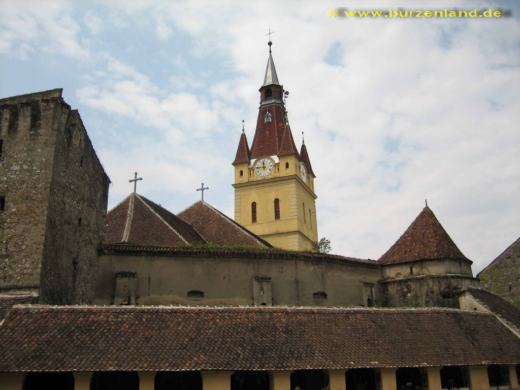 Um 1270 begann der Bau der NIKOLAUSKIRCHE, einer spätgotischen Pfeilerbasilika, von der das schöne (romanische) Westportal sowie das reich verzierte (frühgotische) „Rosenfenster“ darüber heute noch zeugen, im 15.-16. Jh. der Bau der ovalen Kirchenburg mit doppelter Ringmauer und neun Wehrtürmen. 1792 wurde der neue Friedhof angelegt, 1842 die neue (neoklassizistische) Hallenkirche eingeweiht. 1899 erfolgte der Abriss der „Fruchthäuschen“ und des hölzernen Wehrganges, 1903 die Aufstockung und Umgestaltung des Glockenturms zu seiner heutigen Form.