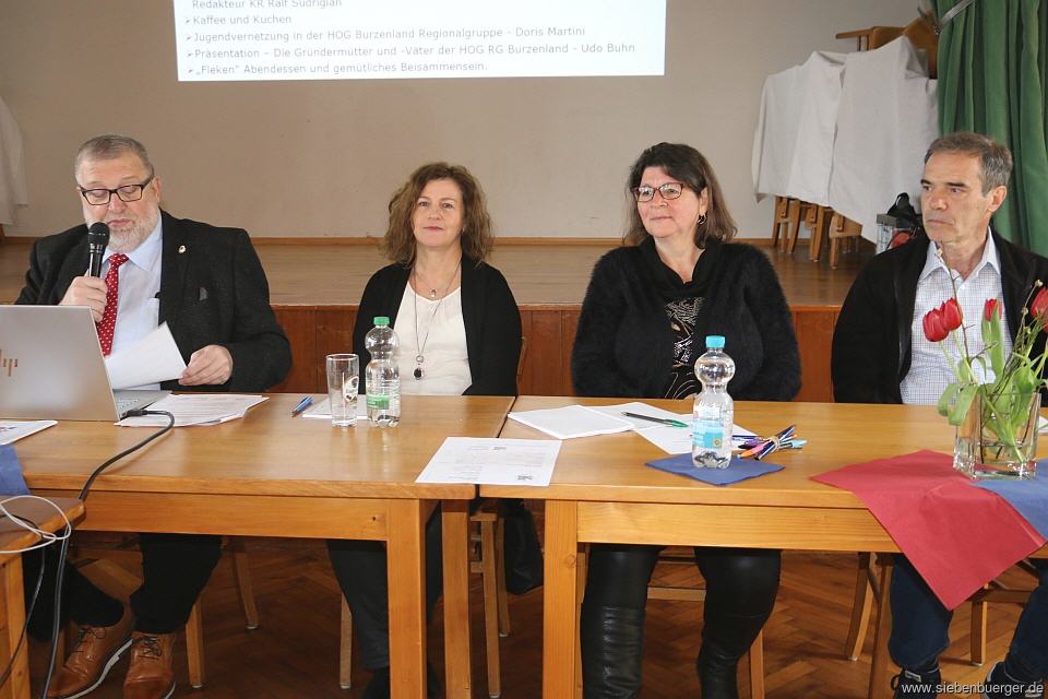 Bei den Wahlen wurde Manfred Binder (Petersberg) als Sprecher der Burzenländer Regionalgruppe bestätigt, genauso Doris Martini (Wolkendorf) als stellvertretende Regionalgruppensprecherin und Klaus Foof (Nußbach) als Kassenwart. Neu gewählt wurde Angelika Schnabel (Neustadt) als Schriftführerin – sie bekleidet dieses Amt kommissarisch seit einem Jahr.