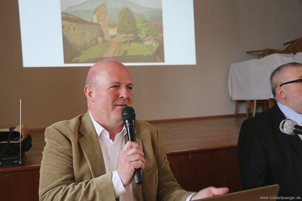 Rainer Lehni, Bundesvorsitzender des Verbandes der Siebenbürger Sachsen, ging auf das Programm des Heimattages ein. Das diesjährige Motto: „Miteinander schafft Heimat“. Die HOGs des Burzenlandes werden, begleitet von zwei Burzenländer Blaskapellen, am Pfingstsonntag am Umzug teilnehmen.